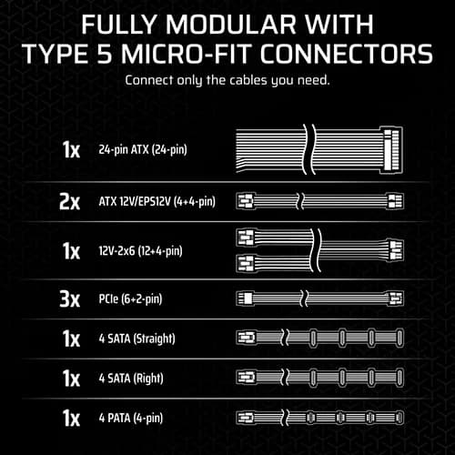 Use Case / Highlights Compact high‑performance systems (SFF builds), ATX 3.1/12VHPWR ready for next‑gen GPUs, fully modular cabling